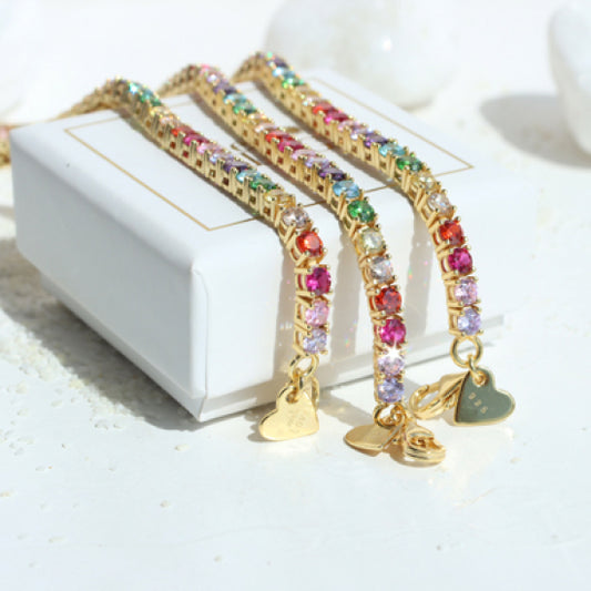 Tennisarmband mit Zirkonia multicolor Silber 925 vergoldet