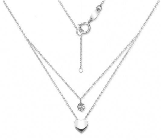 Halskette 2-rhg. mit Herz/Zirkonia Silber 925