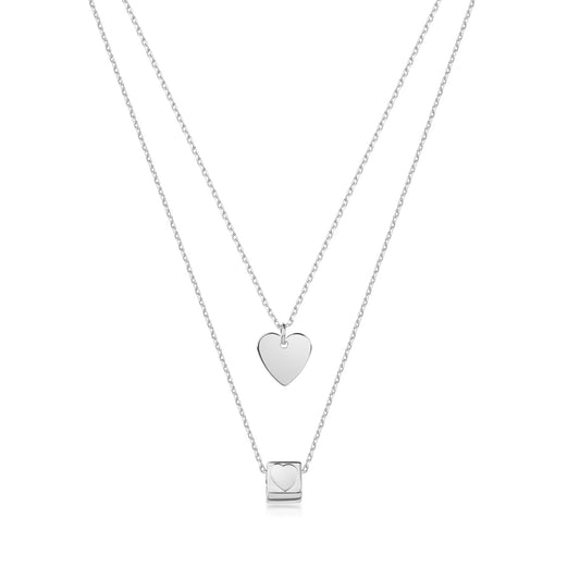 Halskette 2-rhg. mit Herz & Würfel Silber 925 rhodiniert