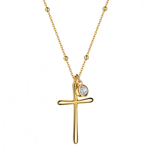 Halskette mit Kreuz/Zirkonia Silber 925 vergoldet
